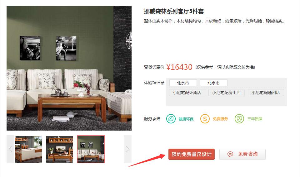 然后,打開產(chǎn)品詳情頁,點(diǎn)擊預(yù)約免費(fèi)量尺設(shè)計(jì)。