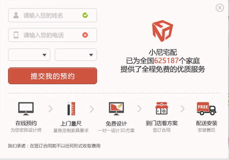 填寫姓名、手機(jī)號(hào)碼、省份城市點(diǎn)擊立即預(yù)約量房設(shè)計(jì)。我們的設(shè)計(jì)師會(huì)在兩個(gè)工作日之內(nèi)與您聯(lián)系上門量房事宜。