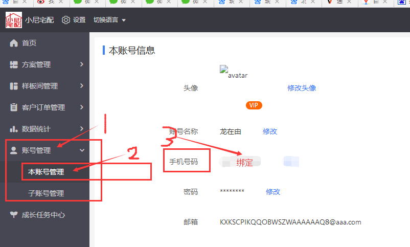 3.2).綁定手機(jī)號(hào)——在帳號(hào)管理->子帳號(hào)管理->手機(jī)號(hào)碼處綁定手機(jī)號(hào)(手機(jī)號(hào)碼要求未在酷家樂(lè)注冊(cè)過(guò)的手機(jī)號(hào))。