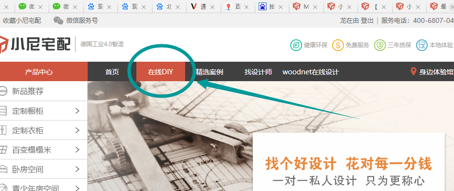 3.1).進(jìn)入在線DIY——小尼宅配官網(wǎng)設(shè)計(jì)師登陸狀態(tài)下點(diǎn)擊導(dǎo)航“在線DIY”進(jìn)入DIY后臺(tái)。