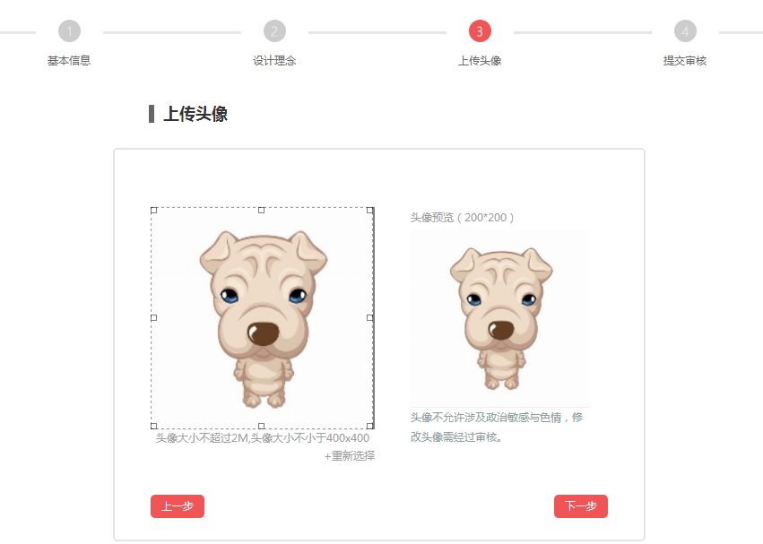 1.5). 上傳頭像后后點(diǎn)擊下一步。