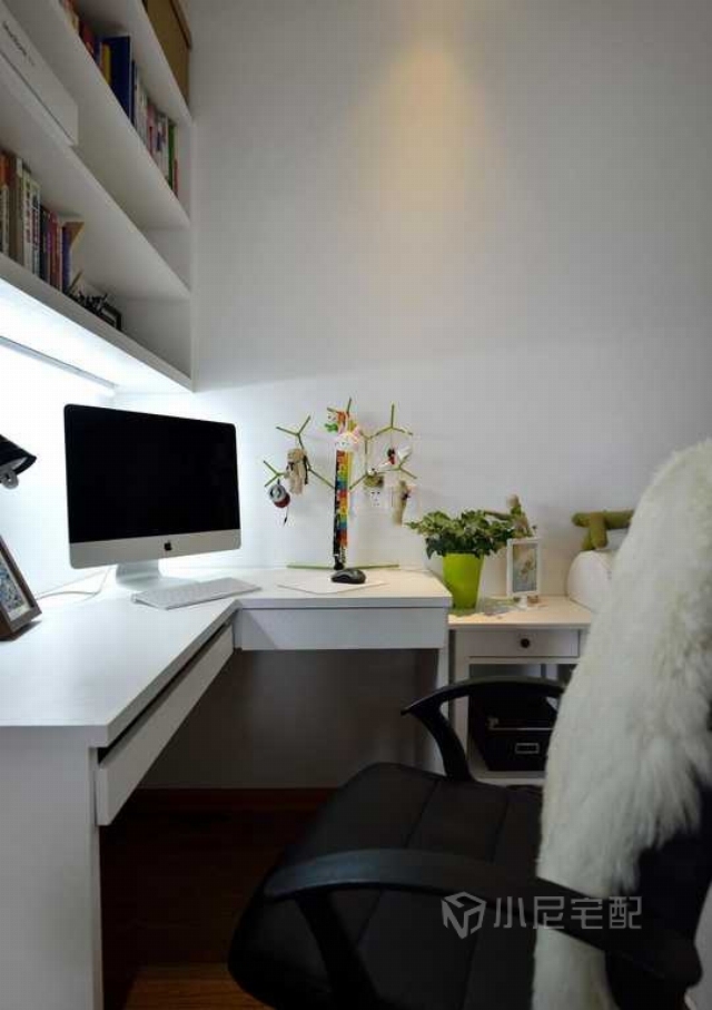 書房的書桌左右設置了可以供休息和儲物兼?zhèn)涞墓褡樱瑵M足了書房儲物盒休閑的多個功能。