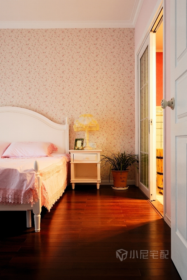 碎花壁紙加上暖色燈光,洗去主人一天的疲勞。