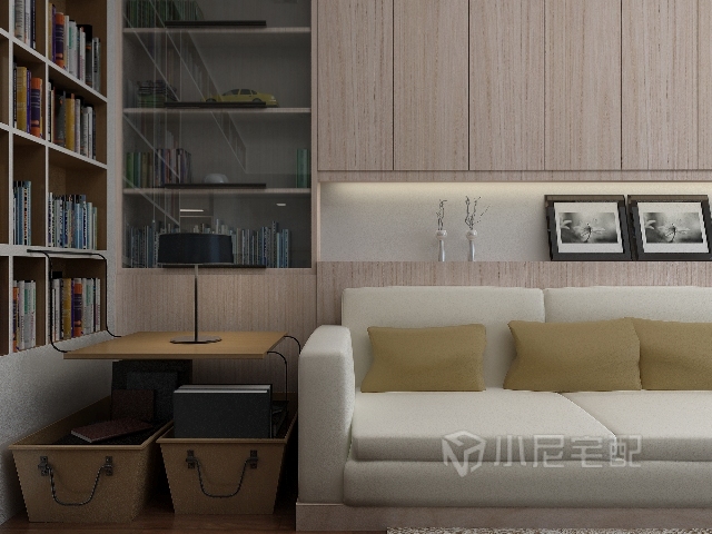 整體色調(diào)比較溫馨、自然,主要體現(xiàn)家具的定制性和實用性。