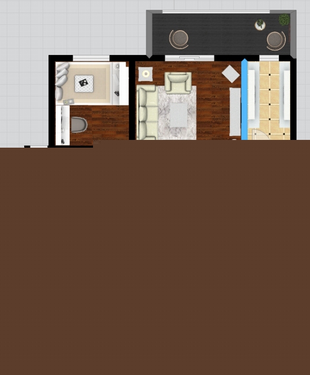 陽臺設計與客廳相互照應,綠色盆栽增添生機。
