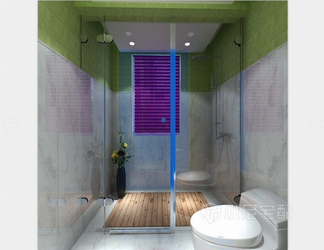 衛(wèi)生間頂部用綠色映襯,給人清新的感覺。
