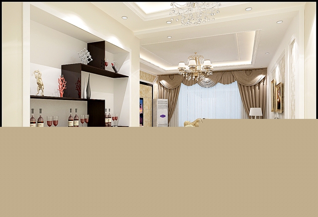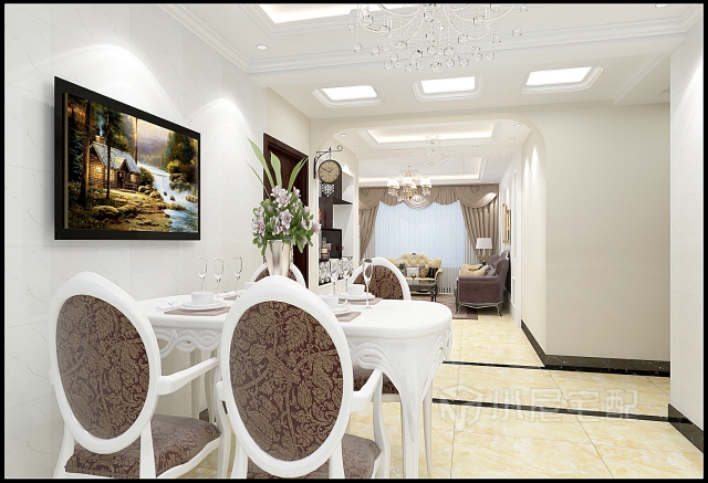 圍繞業(yè)主偏愛的墻磚進(jìn)行設(shè)計(jì),四周加歐式石膏線,又選了與磚塊顏色相近的壁紙。