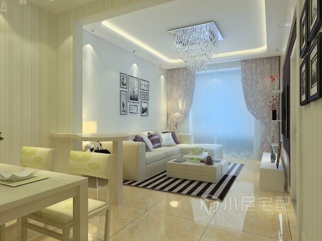 客廳以米黃為主,溫馨而不失浪漫