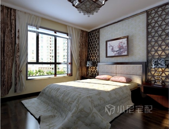 臥室稍作點(diǎn)綴,床頭兩邊運(yùn)用了鏤空雕花板。