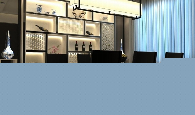 餐廳的酒柜為了營(yíng)造出中式氣氛,運(yùn)用了一些圖騰。