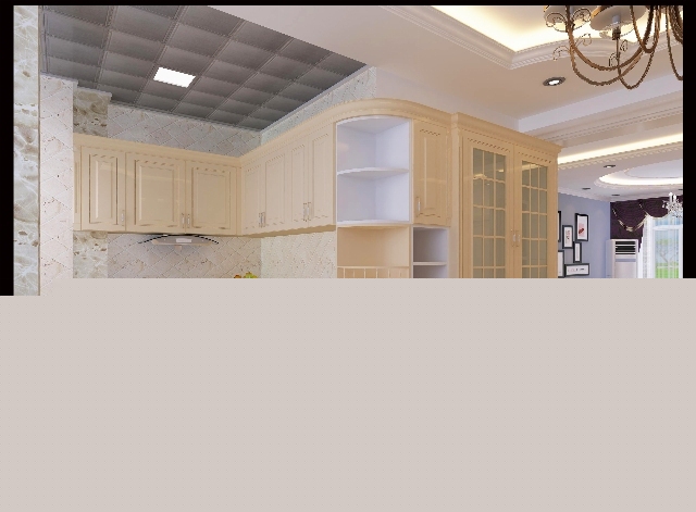 客廳吊頂以圓形為基準,采用歐式線條顯示其美感