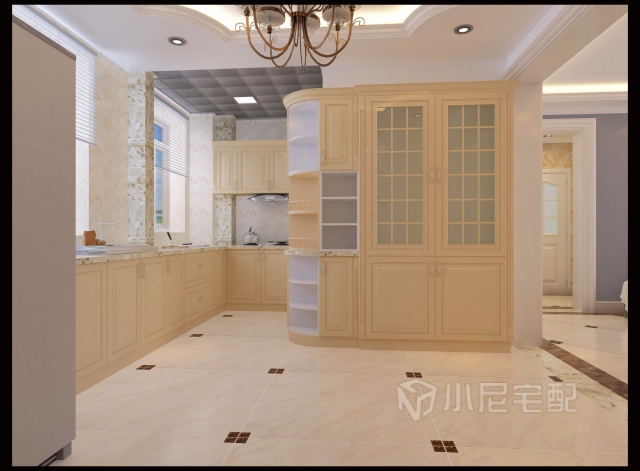廚房設計的臺面根據(jù)廚房的大小,使用不同進深的櫥柜尺寸滿足主人的操作需求