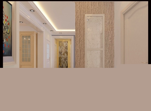 客廳電視背景墻采用硅藻泥設計結(jié)合雕花玻璃的拼框設計,使用空間與美感相結(jié)合