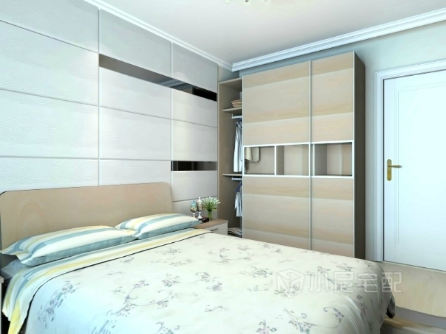 臥室以淡然明亮的色調(diào)出現(xiàn),整個面積并不大,由于臥室的核心設計是床與衣柜,所以除了擺設簡約的雙人床和臥室必備的衣柜以外,沒有再過多的放置其它物品。整個臥室呈現(xiàn)出一種淡靜的清新感,簡約而素雅。