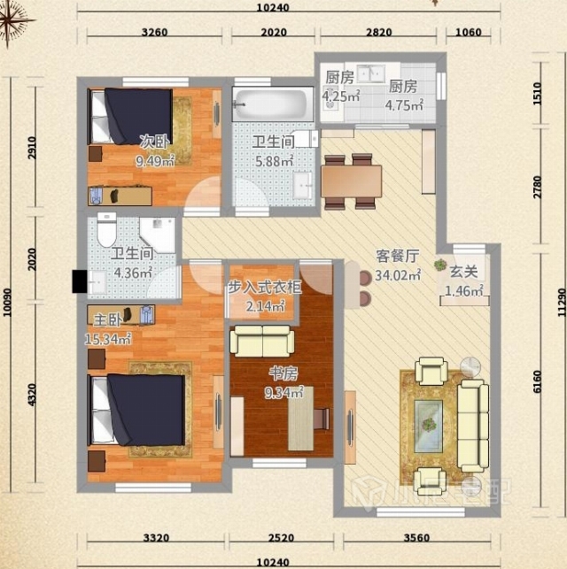 這個小尼宅配套裝木質統(tǒng)一,很復古個性,和空間都很到位