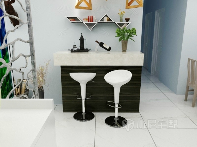 本案主人公是位活潑可愛的文藝女青年,家居色調選擇水亮藍色調作為基調。這個顏色具有擴散和后退性,能使居室呈現(xiàn)清新開朗、明亮寬敞的感受。更不會顯得很沉悶的家