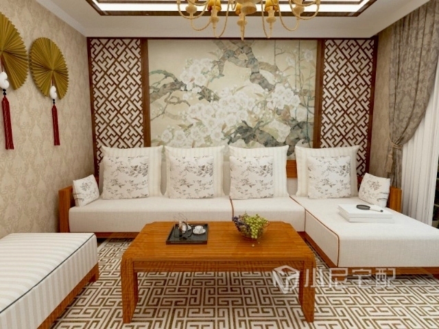 客廳摒除了傳統(tǒng)中式的單一、沉悶,追求時尚與放松的感覺