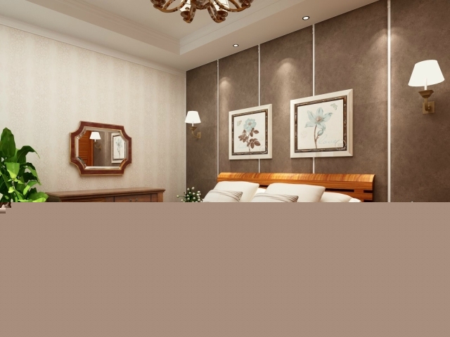 大膽的選用顏色較深的布藝背景墻,淡雅清新的裝飾畫,形成臥室的色彩亮點(diǎn)。