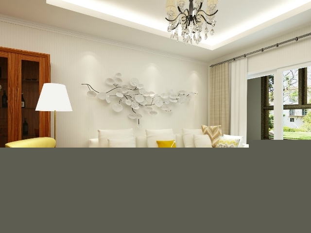白色的沙發(fā),黃色的抱枕和單人沙發(fā)提亮整個空間的色彩,墻上的裝飾物為整個空間增加不少情趣。