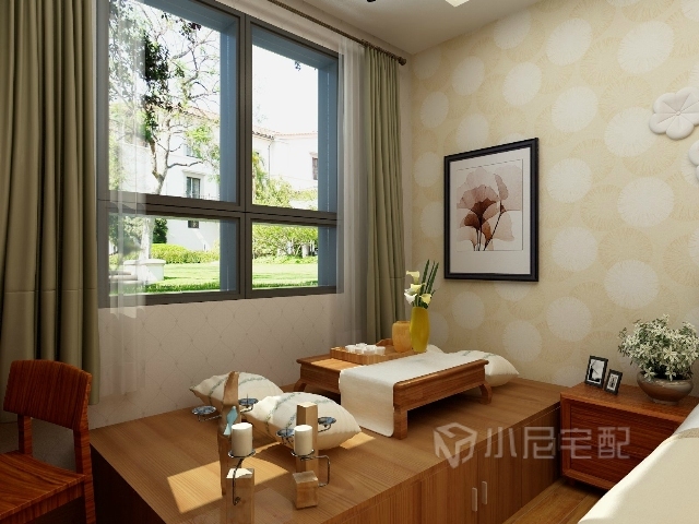 定制榻榻米在臥房的一角,增加儲物功能的同時,增加了休閑的功能,閑暇時坐在窗前喝喝茶,聊聊天。