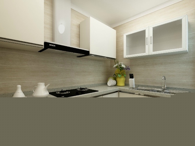 簡約的淺色櫥柜,棕褐色條紋墻磚,顯得既時(shí)尚又簡約。