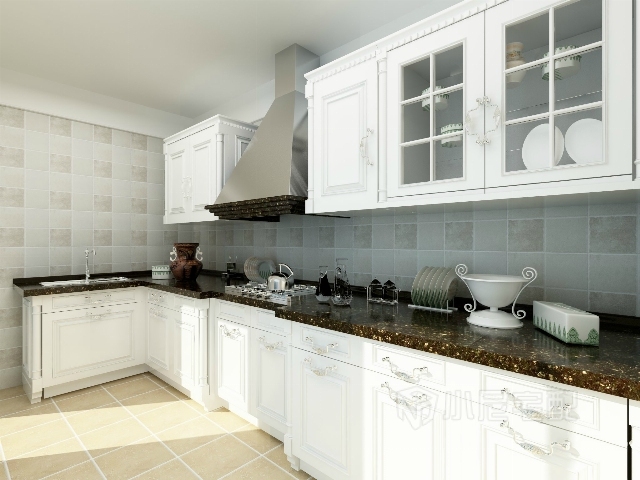 白色的櫥柜顯得明亮整潔,石英石的臺(tái)面耐臟耐磨,功能齊全實(shí)用。