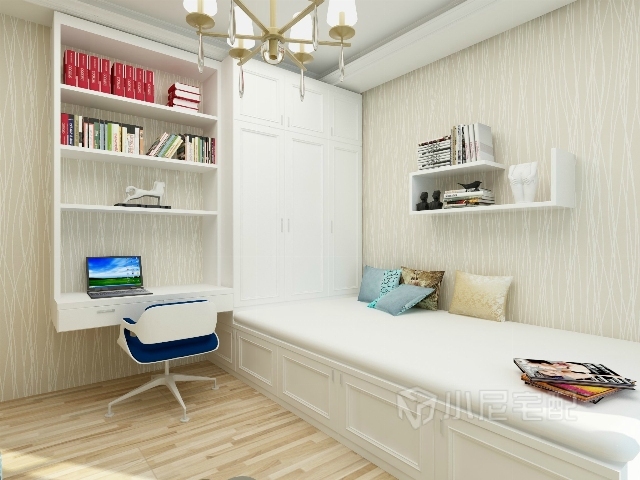 書房設(shè)置了榻榻米和書桌的組合,提高空間利用率,客人來的時(shí)候可以當(dāng)做客房。