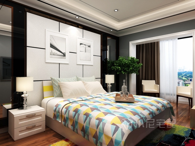 現(xiàn)代的背景墻裝飾,簡約的黑白裝飾畫,亮色的裝飾,減輕沉悶感。