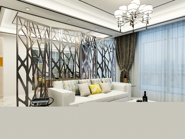 利用金屬質(zhì)感的屏風(fēng)作為隔斷,充分利用空間。
