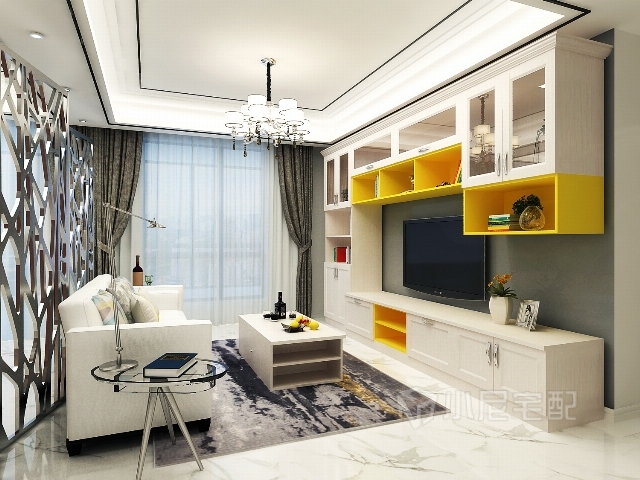 定制電視柜合理利用空間,造型簡約,色彩鮮艷。