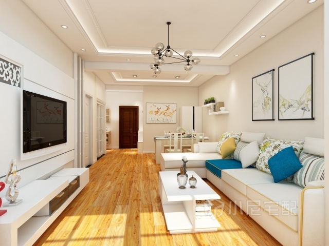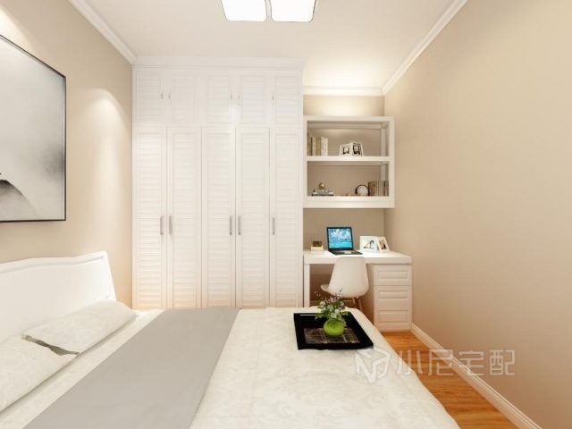 白色柜體帶來自然般的舒適,木色地板點綴時尚簡約。