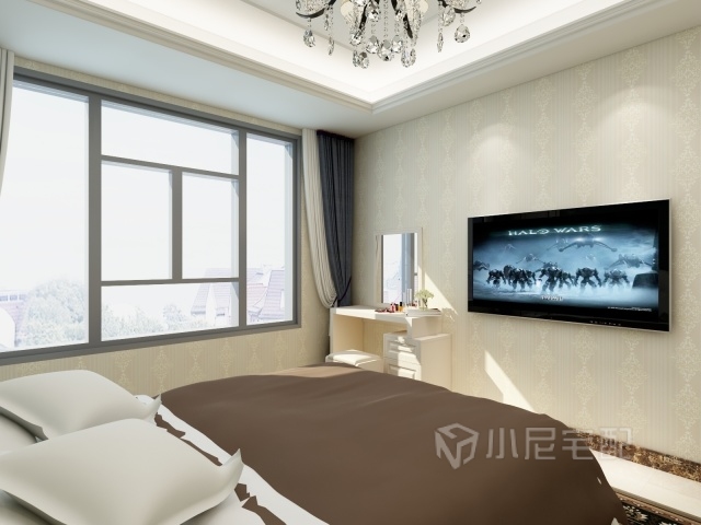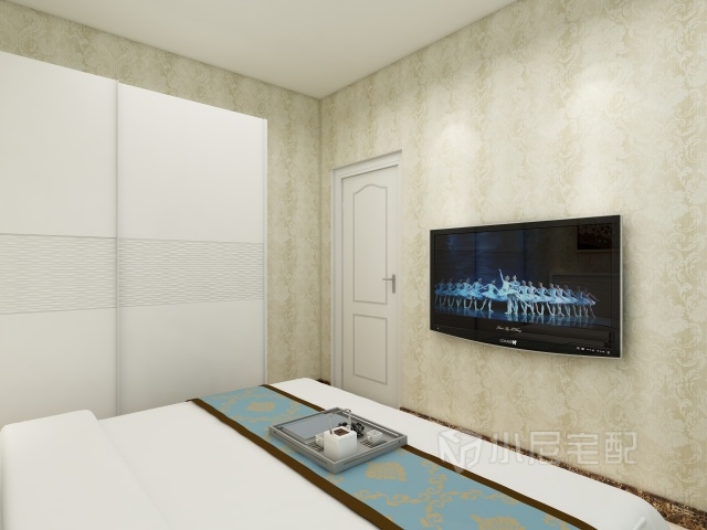 移門衣柜解決小戶型空間問題,床頭掛畫體現(xiàn)主人品味。