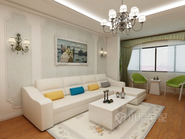 沙發(fā)色彩搭配清新淡雅,給人一種放松舒適的感覺(jué)。