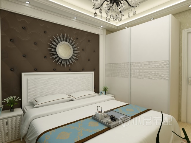 臥室美觀舒適,推拉門衣柜節(jié)省空間。