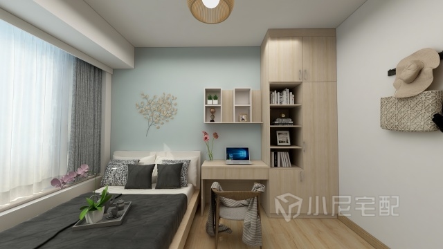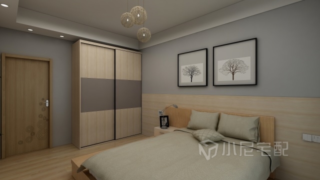 臥房床和衣柜的簡(jiǎn)約木色設(shè)計(jì),將人帶回到大自然,回歸平靜,為什么不讓自己做個(gè)美夢(mèng)!
