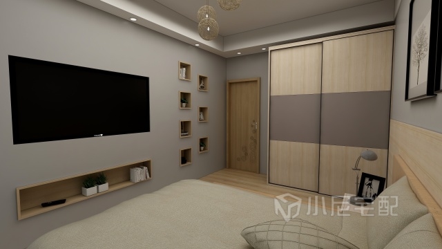 臥房電視墻嵌入式的設(shè)計(jì),更增加了空間的層次感,空間的完美結(jié)合,讓人感覺更加舒服!