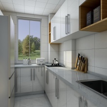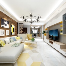 時(shí)尚簡(jiǎn)潔,空間以實(shí)用為主,美觀為輔,開闊明朗,體現(xiàn)高品質(zhì)的家居環(huán)境即可。 案例說明:簡(jiǎn)約不等于簡(jiǎn)單,它是設(shè)計(jì)師深思熟慮后經(jīng)過創(chuàng)新得出的設(shè)計(jì)和思路的延展,不是簡(jiǎn)單的“堆砌”和平淡的“擺放”,在本案設(shè)計(jì)中設(shè)計(jì)師把原有的廚房和客廳相融合使客廳整體空間變得更大使用起來更舒適。在家具配置上,白亮光系列家具,獨(dú)特的光澤使家具倍感時(shí)尚,具有舒適與美觀并存的享受。在配飾上,延續(xù)了黑白灰的主色調(diào),以簡(jiǎn)潔的造型、完美的細(xì)節(jié),營造出時(shí)尚前衛(wèi)的感覺。