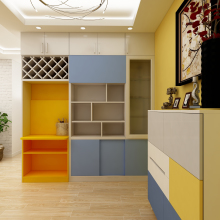 白色的基調(diào),跳動(dòng)的色彩,同色系不同色度的搭配,整個(gè)空間充滿活力,。
