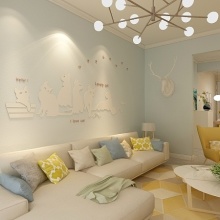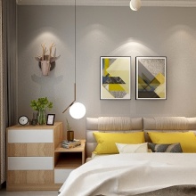 霧藍(lán)色的墻面遇見暖暖的黃色燈光,碰撞出不一般的顏色。