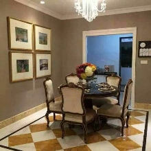 少了富麗堂皇的裝飾和濃烈的色彩,呈現(xiàn)的則是一片清新,典雅和大氣并存的輕松空間。肌理的電視背景墻,明亮素實(shí)的窗簾,和古典色彩的地毯相呼應(yīng)的吊燈,加上造型簡(jiǎn)潔大方的沙發(fā)構(gòu)成了一個(gè)典型的歐洲世界,送給心靈一次歐洲的游歷。