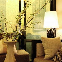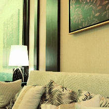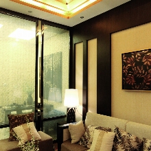 本案結(jié)合建筑自身的空間優(yōu)勢將客廳天花做成層層木質(zhì)疊級再配上燈光及黑鏡使空間既深遂又具有視覺沖擊力,經(jīng)典繡花屏風改良成既現(xiàn)代又不失其韻味的夾絲玻璃屏風,使整個空間透出柔美而又令人記憶猶新的混搭情愫。家裝家具一體價:20.4萬。