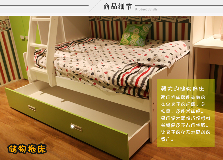 | 規(guī)格 | 雙層兒童床:2820*1300*2200mm 下鋪床墊:1900*1200*150mm 上鋪床墊:1900*900*50mm 兒童字臺:1200*550*1950mm |