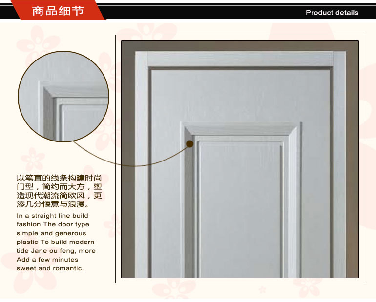 | 友情提示 | 親愛(ài)的客戶,我們的門扇標(biāo)準(zhǔn)尺寸是高度1900-2100mm,寬度700-900mm,厚度40±1mm;如有尺寸超高、超寬、超厚,請(qǐng)與 客服聯(lián)系 。 |