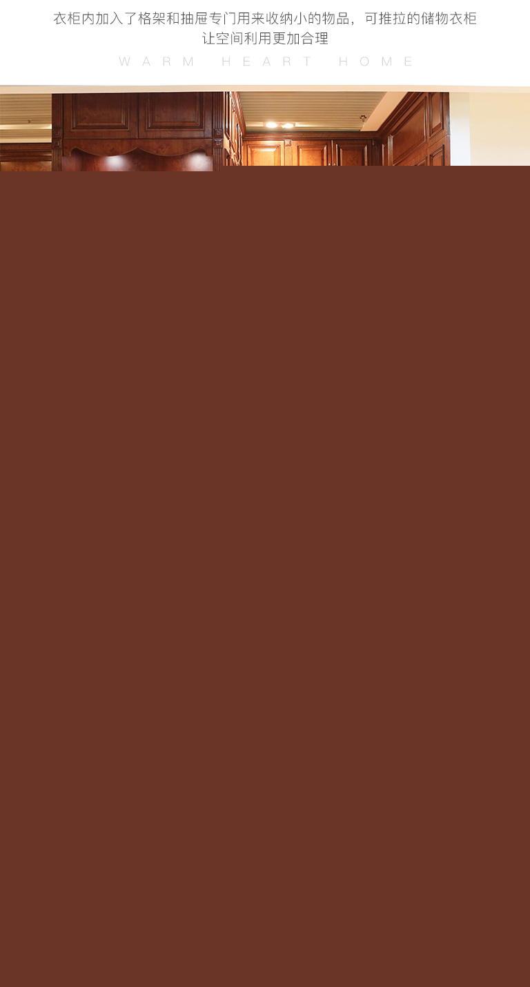 衣帽間確保沒有一處空間浪費,同時也給衣物最適合的收納方式。衣柜內(nèi)加入了格架和抽屜專門用來收納小的物品,可推拉的儲物衣柜讓空間利用更加合理,軟包護墻板和鏡子,舒適美觀,使用安全 ,使整體空間裝飾效果明顯,方便保養(yǎng)維護。漫步其中,每一寸空間都擁有無論倫比的精致與奢華。